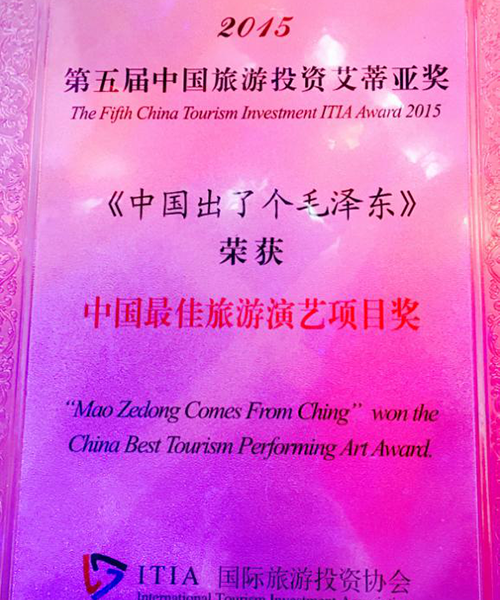 2016年1月16日,大型实景演出《中国出了个毛泽东》荣获ITIA(艾蒂亚)2015中国最佳旅游演艺项目奖。该奖被誉为中国旅游投资界的“奥斯卡”奖。